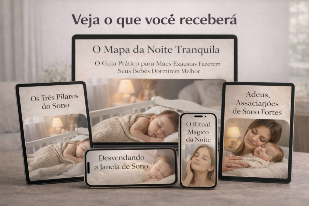 O Mapa da Noite Tranquila é um método cuidadosamente desenvolvido para organizar o sono do seu bebê, devolver previsibilidade às noites e restaurar o descanso da família. Não é mais um curso teórico — é um guia prático, aplicável e que realmente funciona.