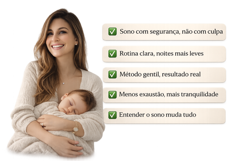Um caminho claro e respeitoso que acalma o sono do seu bebê, reduz o cansaço diário e transforma suas noites em momentos de paz.